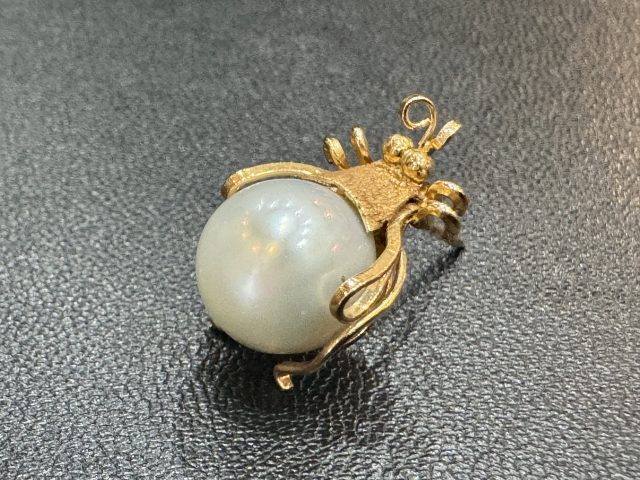 胴体部分はパールで、全体はK18イエローゴールドで作られています。