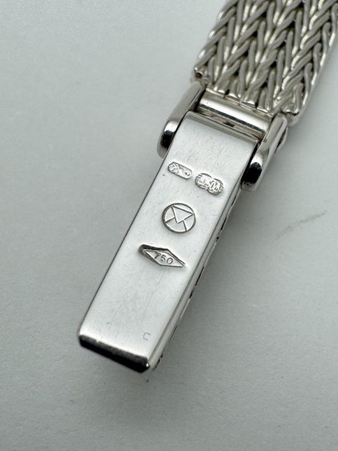 品位も750(K18)でベゼルにダイヤもセッティングされています。