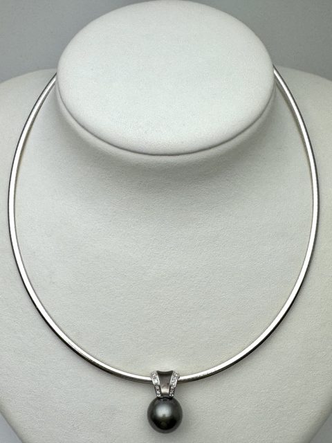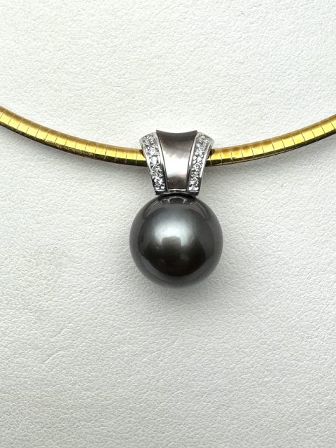 「黒蝶真珠 12.6mm ダイヤ オメガチェーンネックレス K18/K18WG」
