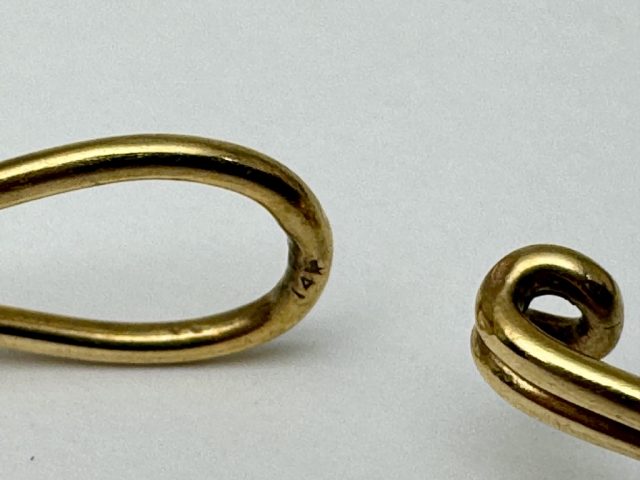 実はこの古いお品で「14K」の刻印の場合、実際の金性と違う事も多々あります。
