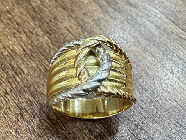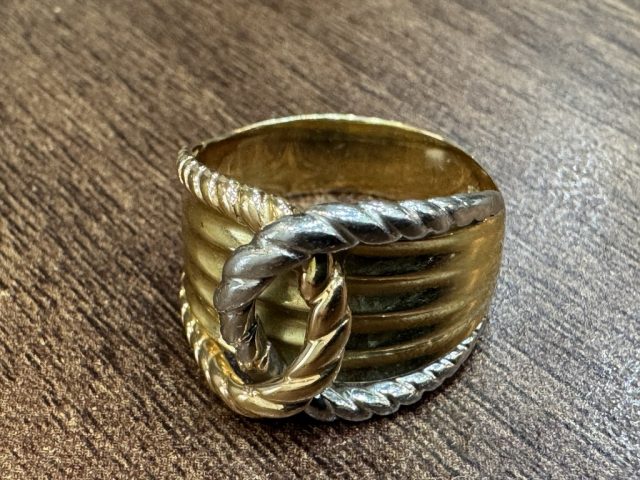 本日、K18とPt900のコンビのロープデザインの指輪をお買い取りさせて頂きました。