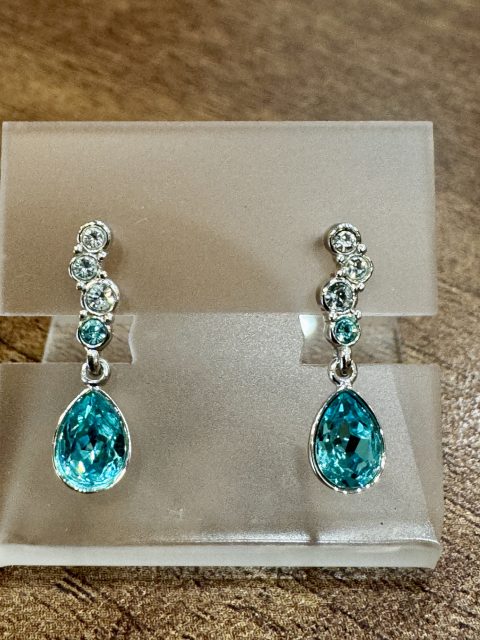 お持ちいただいたこちらのお品は、アクアブルークリスタルが上品なデザインです。