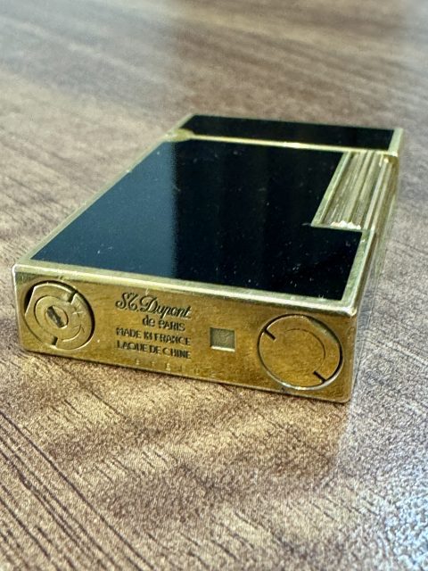 S.T. Dupont(エス・テー・デュポン)のライン2 ガスライター、ブラックラッカー(黒漆)とゴールドのモデルです