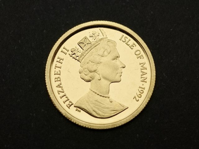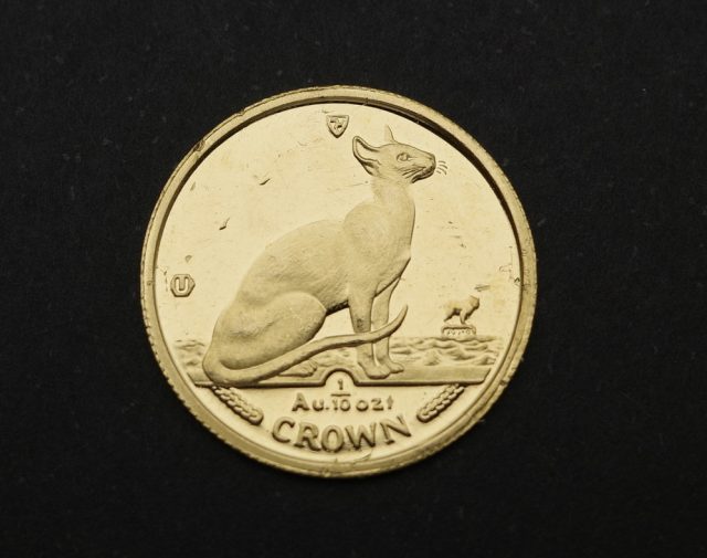 こちらは、イギリス王室属領であるマン島政府が1992年に発行した「マン島キャット金貨(シャム猫)です。